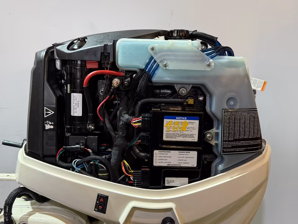 Bootsmotorenhandel Poppschötz bietet einen gebrauchten Evinrude E-Tec 90 PS 3-zylinder zweitakt an.